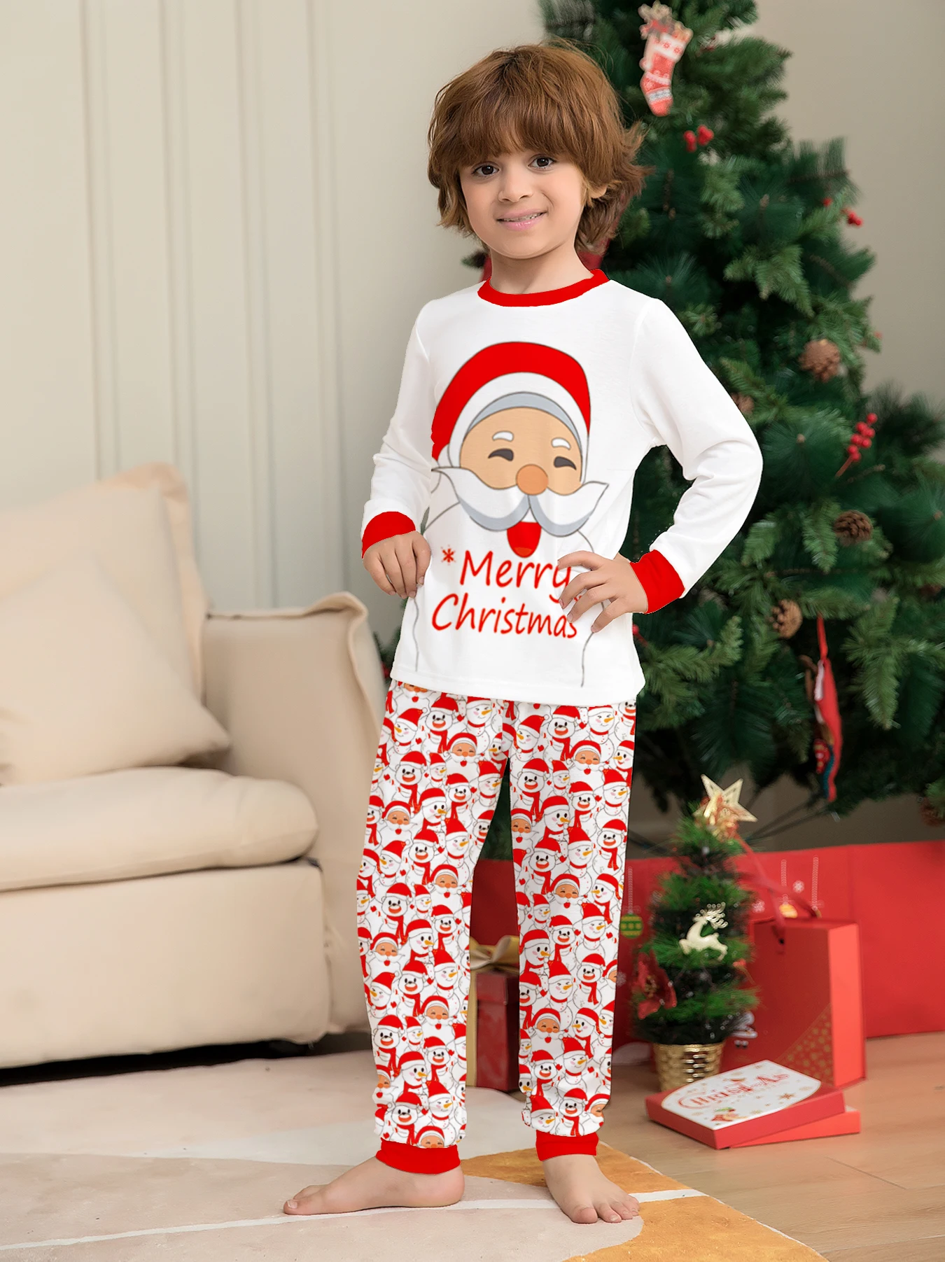 Festive family pajamas featuring charming Santa and reindeer prints in a soft, cozy knit. Designed with a comfortable pullover style and unisex fit, these sets are perfect for holiday lounging, photos, and Christmas mornings.
