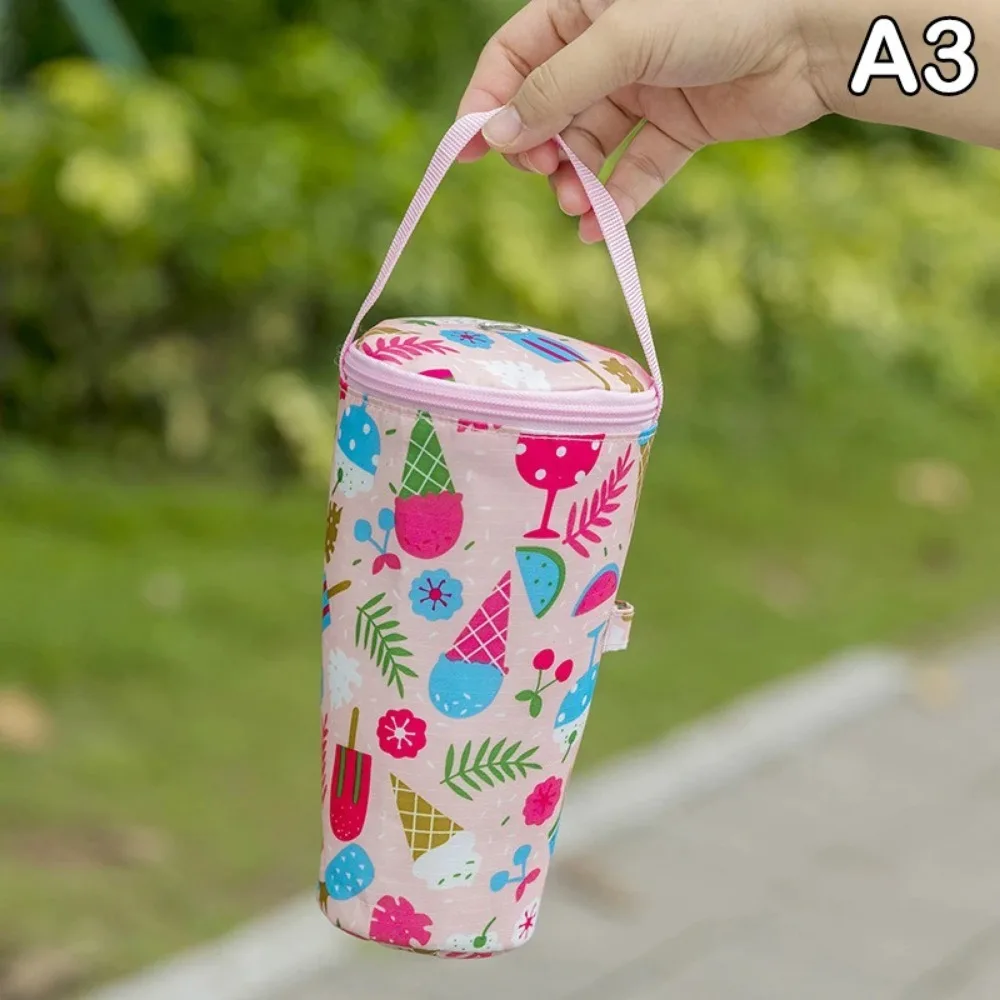 A portable canvas tote with heat preservation, perfect for carrying milk tea, drinks, or small items. Multipurpose design doubles as an umbrella or accessory bag.